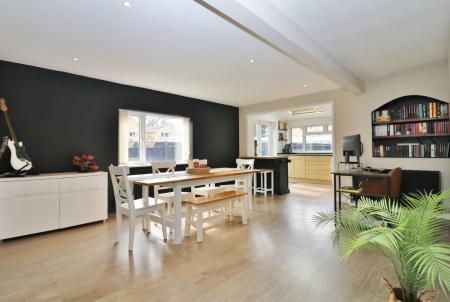 The front door opens into the hallway which has stairs to the first floor and is open plan to the spacious living room which has a window to the front. The room flows through to the good size dining room which has a window to the side and a door to the modern WC.