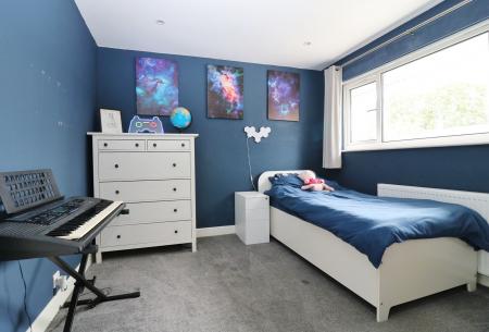 The spacious master bedroom faces the front of the property and has fitted wardrobes to one wall, whilst bedroom two overlooks the rear garden and the third bedroom has a window to the front.