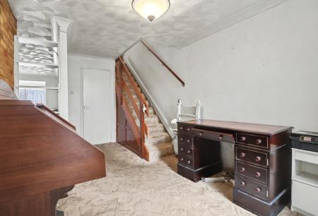 The generous entrance hall has stairs to the first floor and flows through to the spacious lounge, which is open plan to the dining room which has a window to the side and patio doors leading out to the rear garden.
