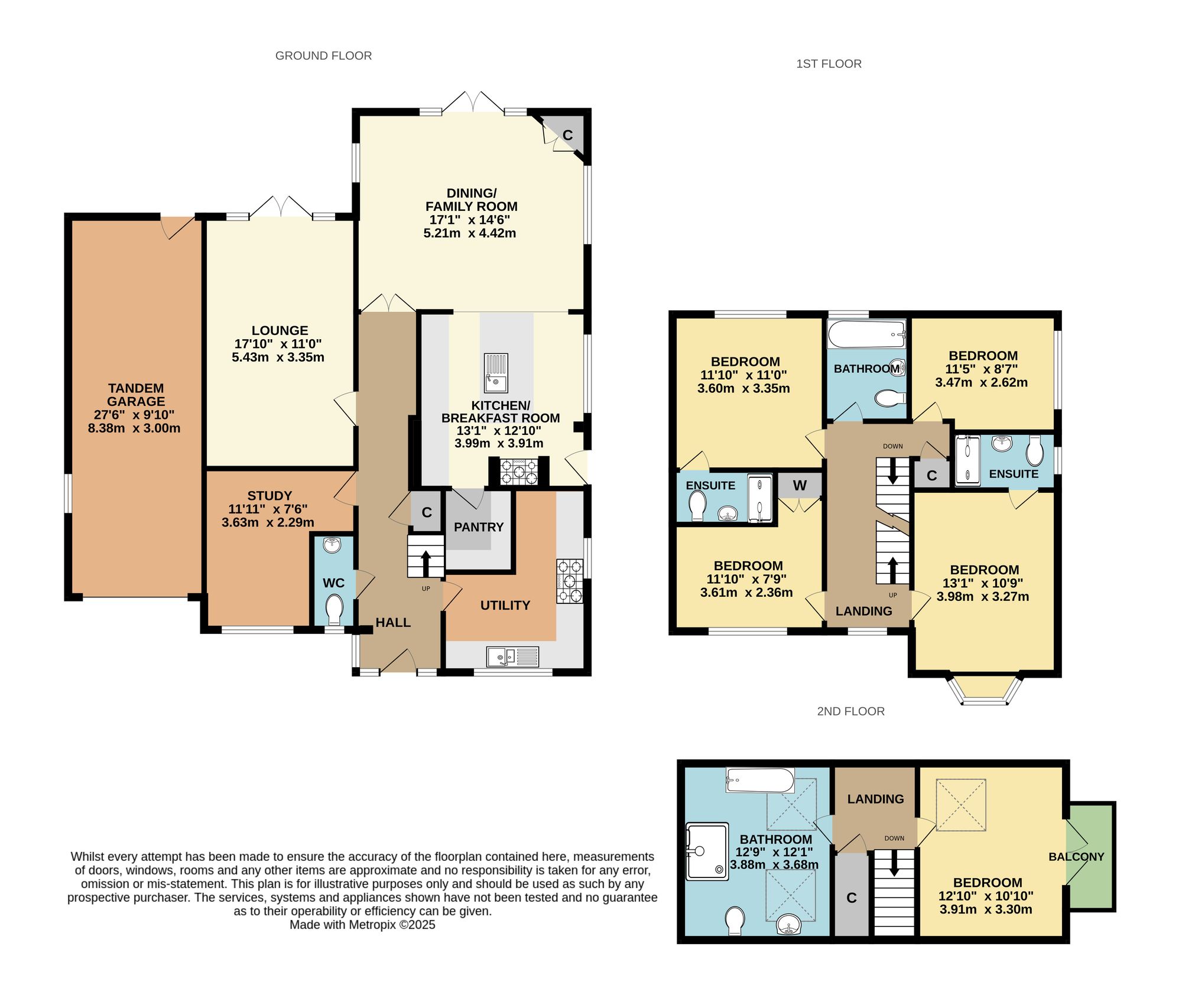 The ground floor comprises a wonderful, 28ft, open plan kitchen/dining/family room with French doors to the rear garden, a lounge, study, second kitchen/utility and a WC.