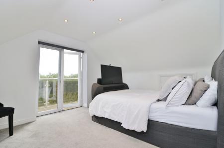 The top floor master bedroom has a Velux window and French doors leading onto the balcony, which enjoys wonderful countryside views. The large bathroom comprises a shower cubicle, bath, wash hand basin, WC, heated towel rail and two Velux windows.