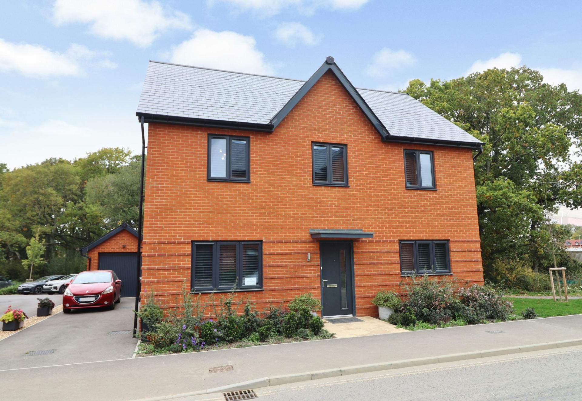 To the side there is driveway parking for 2-3 cars, leading to the detached single garage.