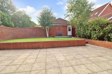 The attractive, rear garden has been landscaped to provide a paved patio area, leaving the rest of the garden laid to artificial lawn with a decked seating area at the end and pedestrian access to the garage.