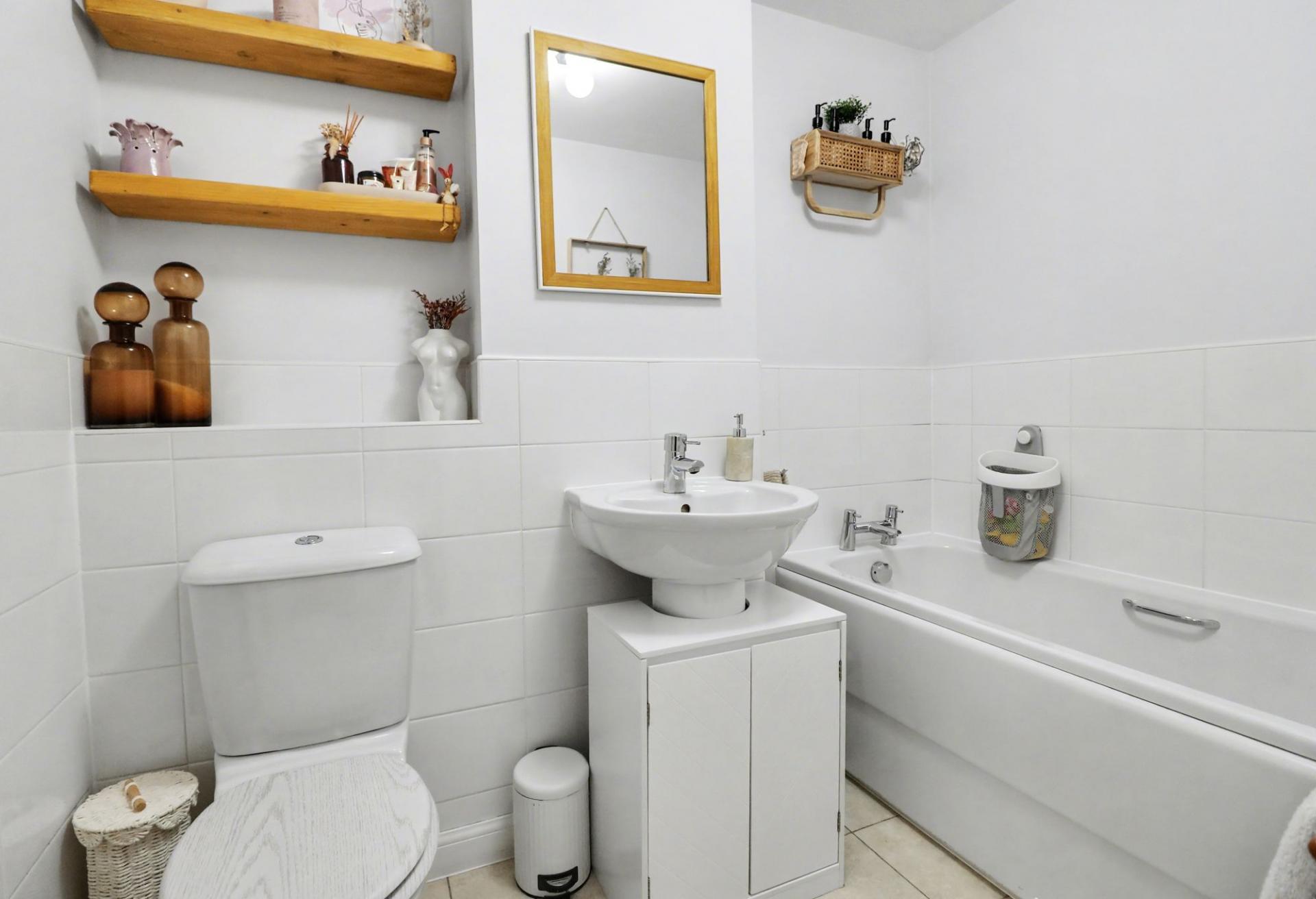 The double bedroom has fitted wardrobes and cupboards along one wall and overlooks the rear garden, whilst the modern family bathroom comprises a panel enclosed bath, wash hand basin and WC.