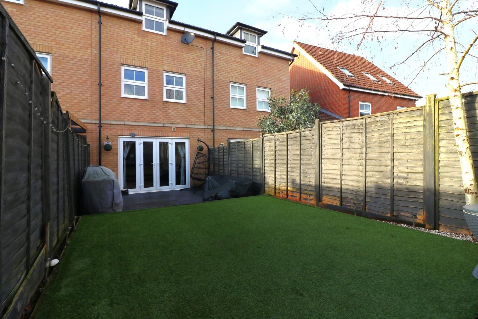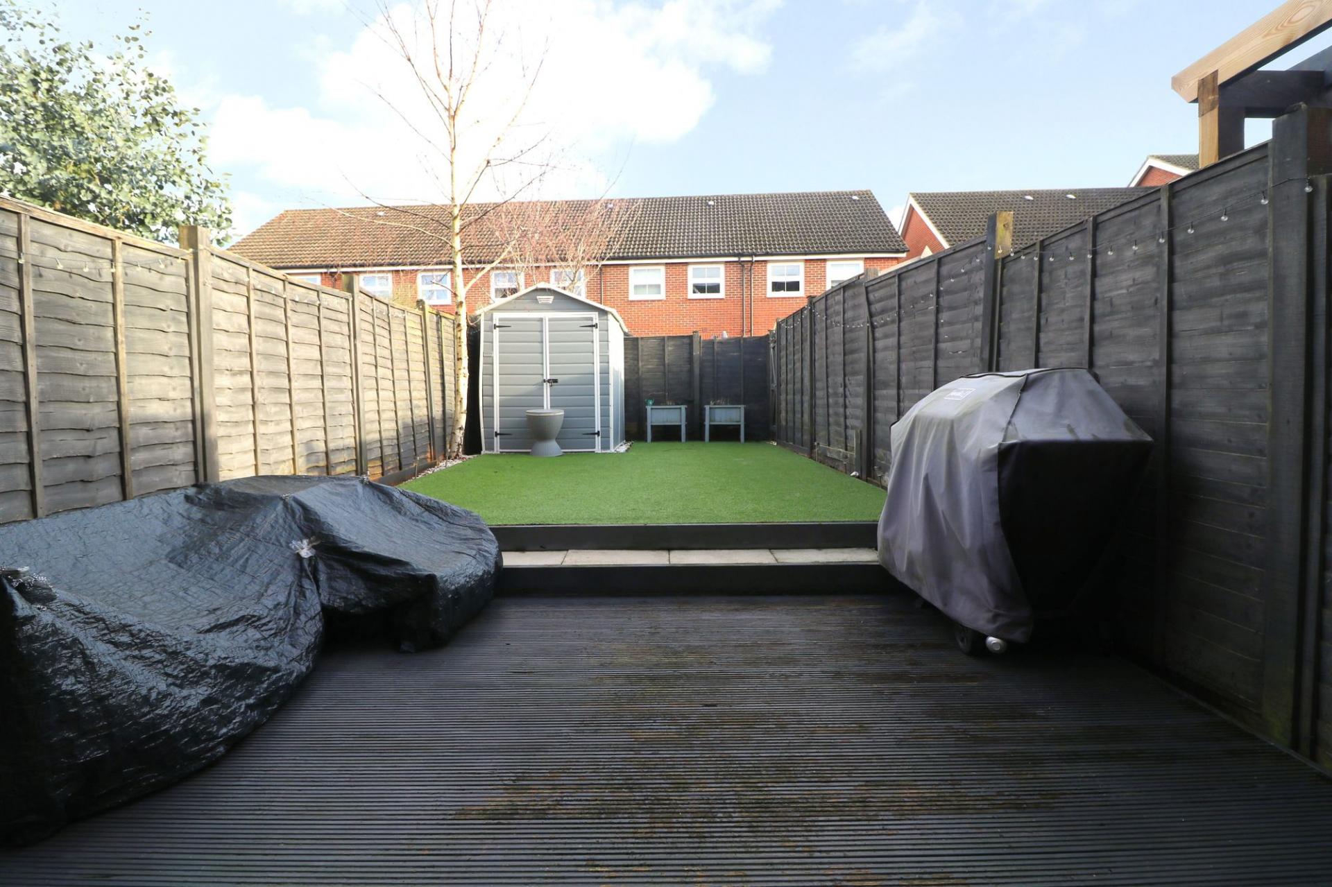 To the front there is driveway parking for one car, as well as an additional allocated space opposite. The landscaped rear garden has a decked seating area, leaving the rest of the garden laid to artificial lawn.