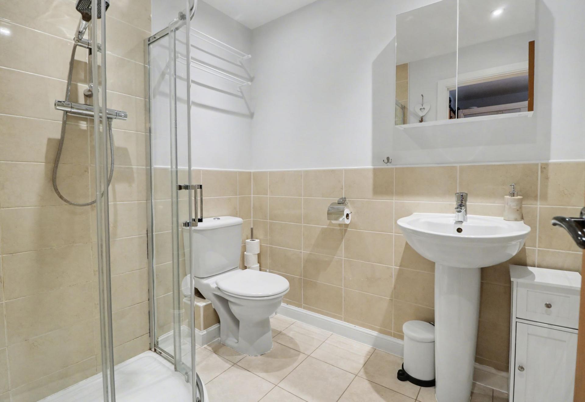 The top floor provides two, well-proportioned double bedrooms, one of which has fitted wardrobes, with both bedrooms benefitting from en-suite shower rooms.