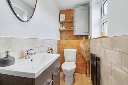 The entrance hall has stairs to the first floor and doors through to the kitchen and WC, which has a window to the front.