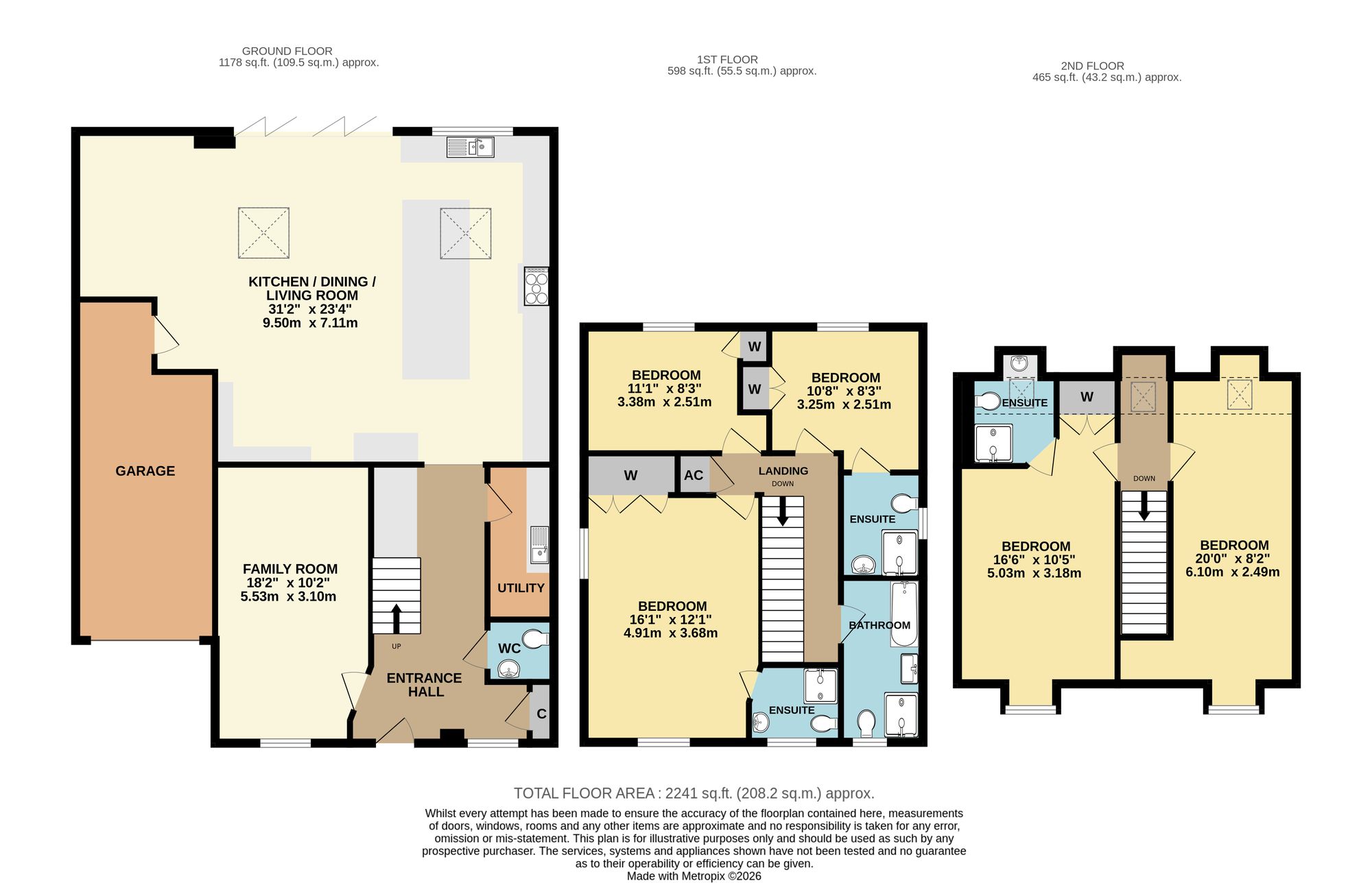 On the first floor there are three bedrooms, two with en-suite facilities, as well as a luxury family bathroom, with the top floor offering two further, good-sized bedrooms with an additional en-suite shower room.