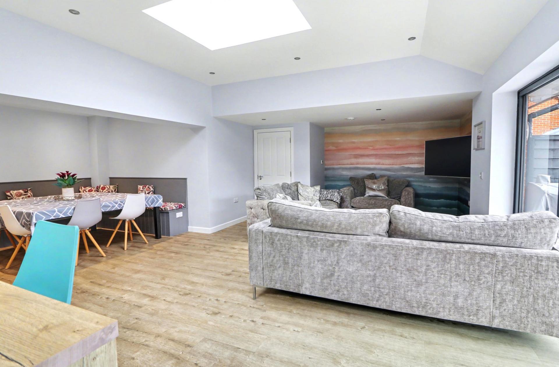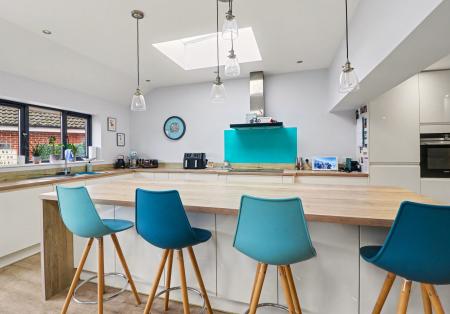 The heart of the home has to be the impressive kitchen/dining/living room, which offers spacious, open plan, family living and features two skylight windows and bi-folding doors to the rear garden.
