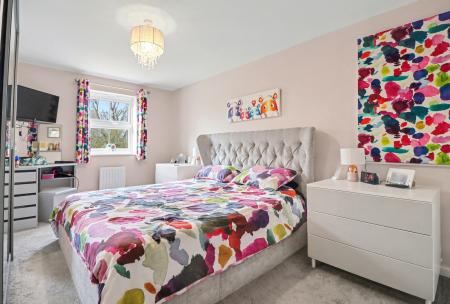 The generous master bedroom enjoys a dual aspect, a fitted wardrobe and an en-suite shower room. There are two, well-proportioned bedrooms which both overlook the rear garden and have built-in wardrobes, with one benefitting from a modern en-suite shower room.