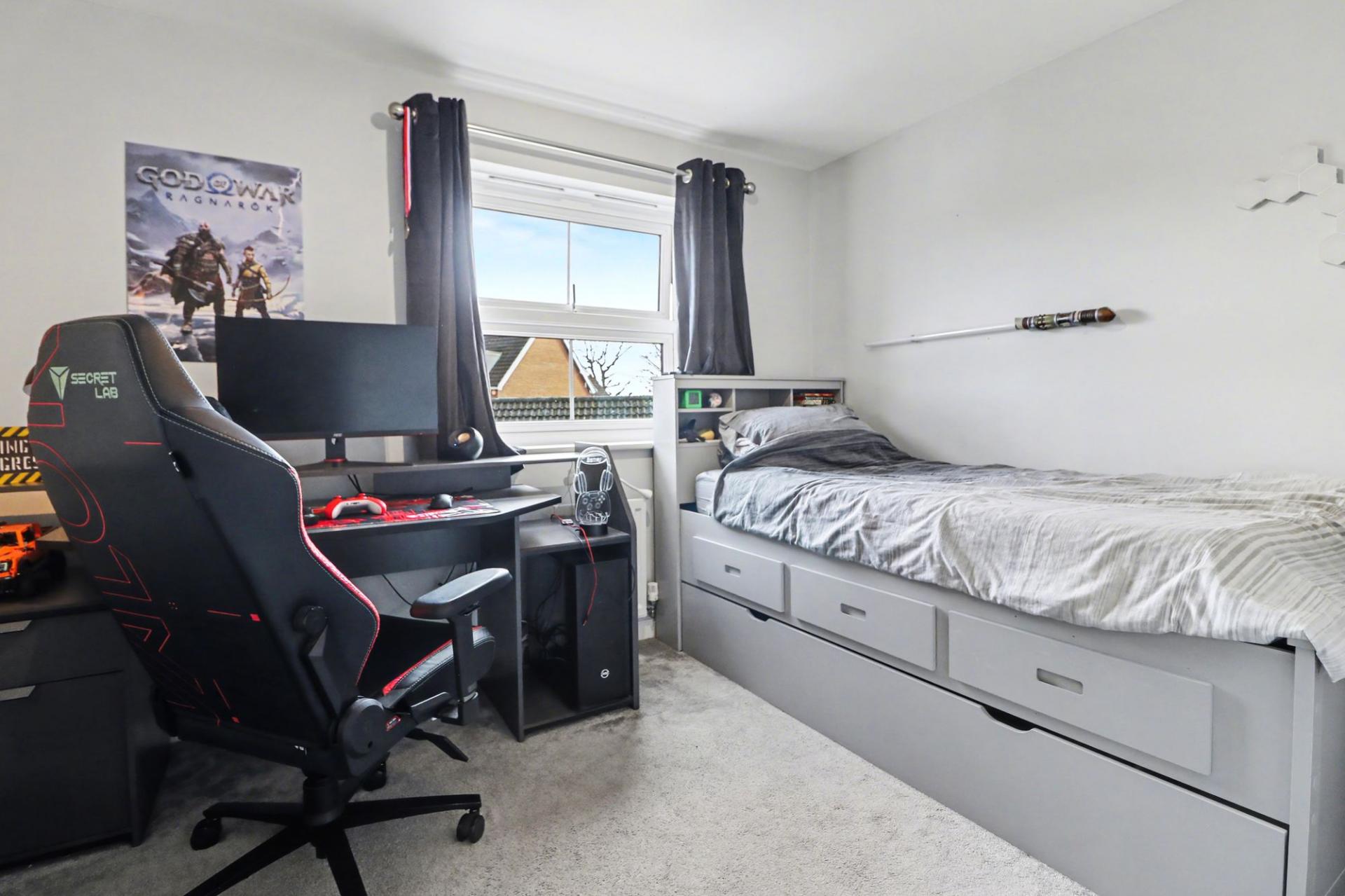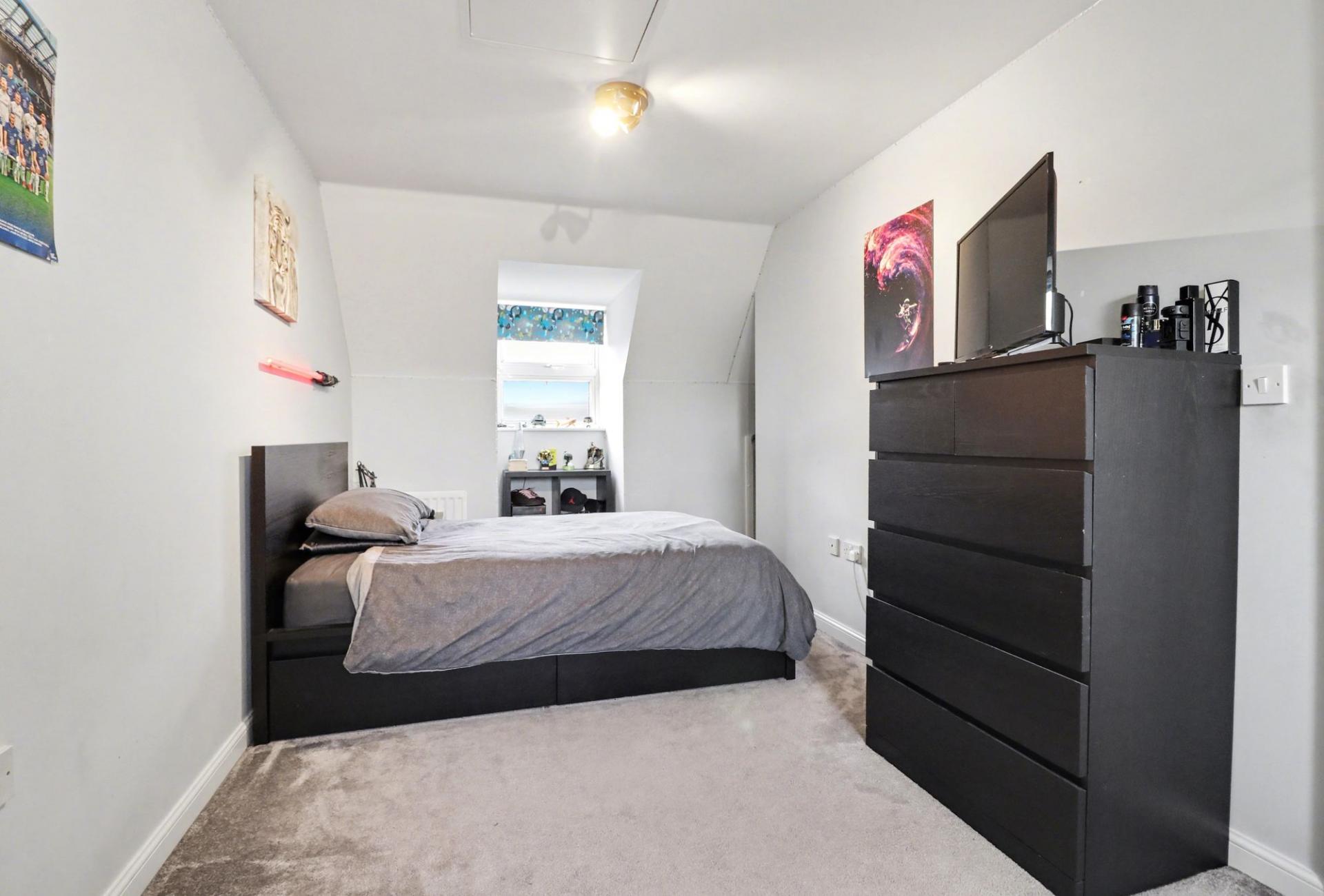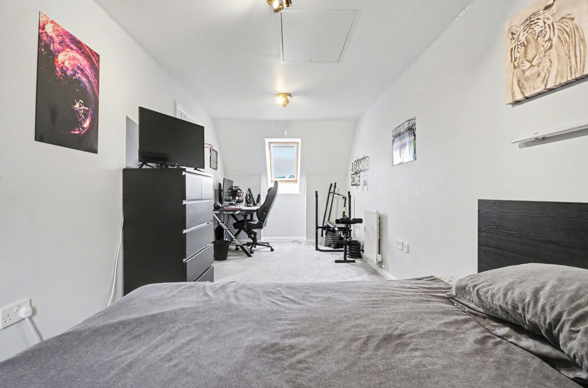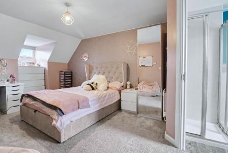 There are two good-sized bedrooms on the top floor, the larger of which features a fitted wardrobe and a modern en-suite shower room.
