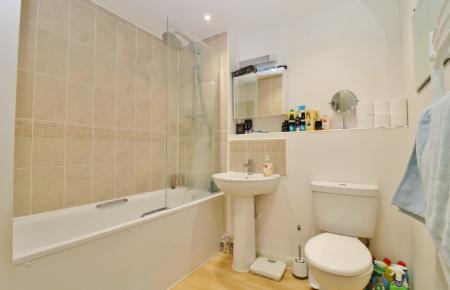 The double bedroom has a built-in cupboard to one corner and a window to the rear. The modern bathroom comprises a panel enclosed bath with shower over, wash hand basin, WC and a heated towel rail.