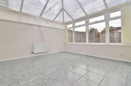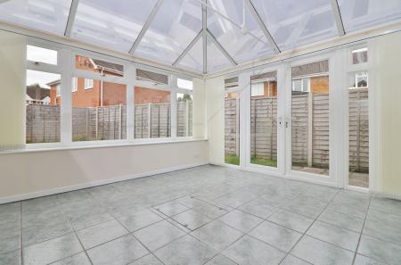The spacious, UPVC double glazed conservatory has French doors leading out to the garden, tiled flooring and gas central heating.