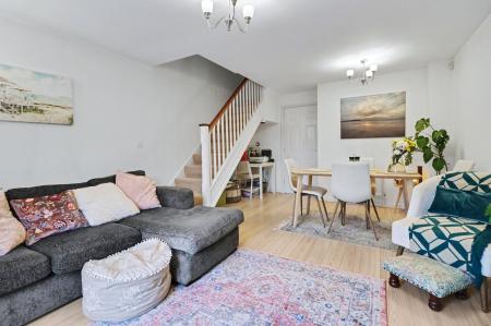 The spacious lounge/diner has French doors leading out to the rear garden and stairs to the first floor.