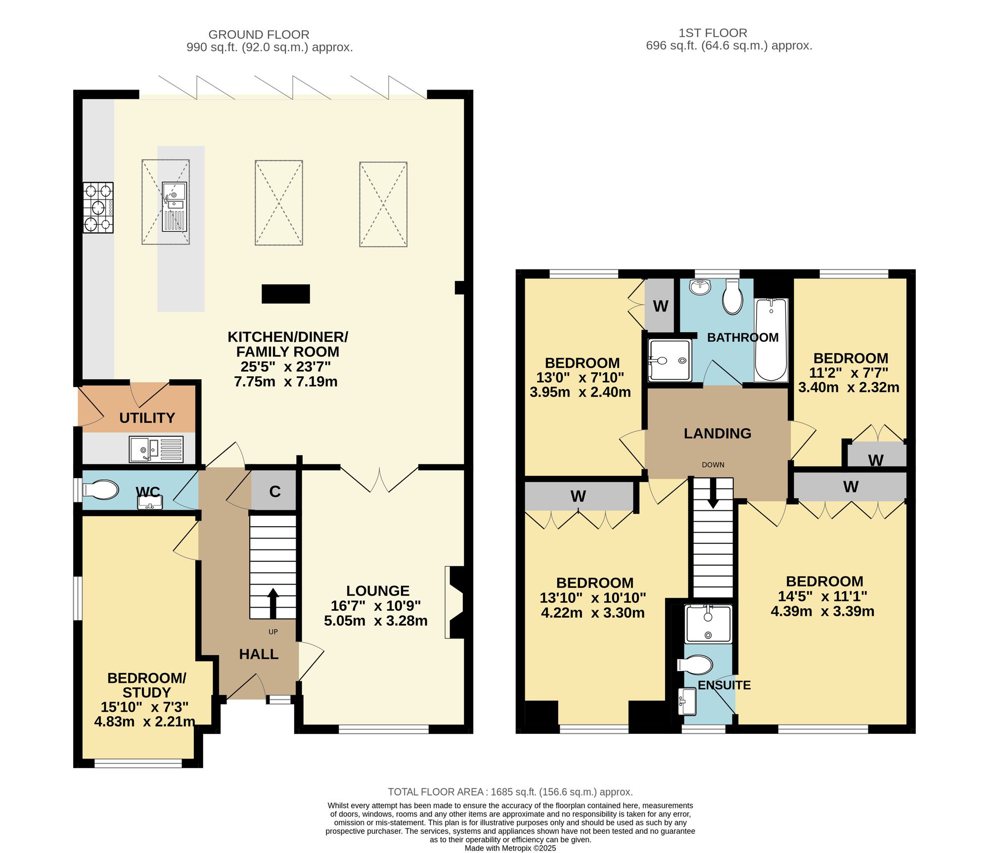 The entrance hall has stairs to the first floor, a storage cupboard and doors through to all principal rooms, including the WC and ground floor bedroom/study which has windows to the front and side.