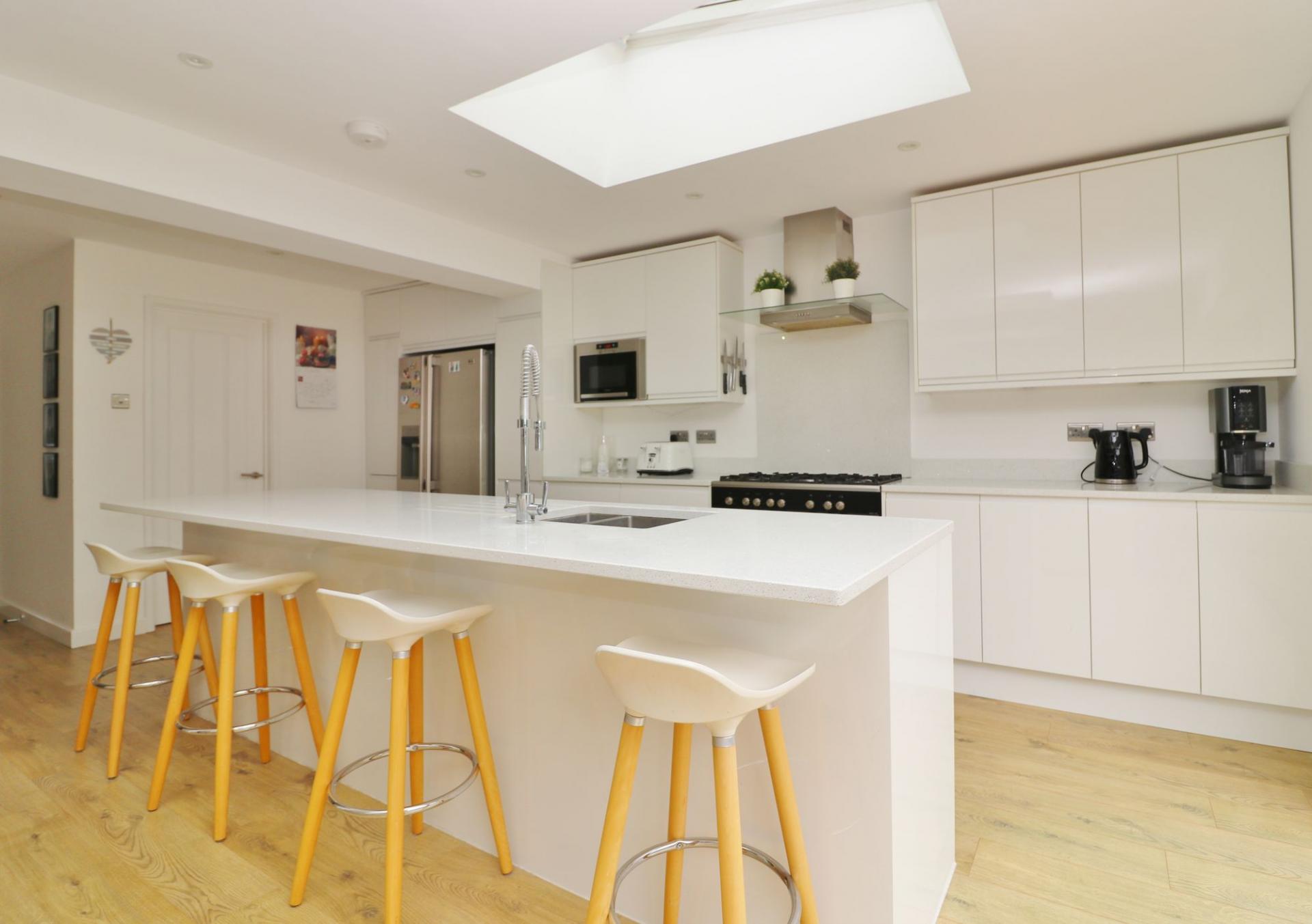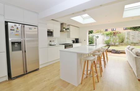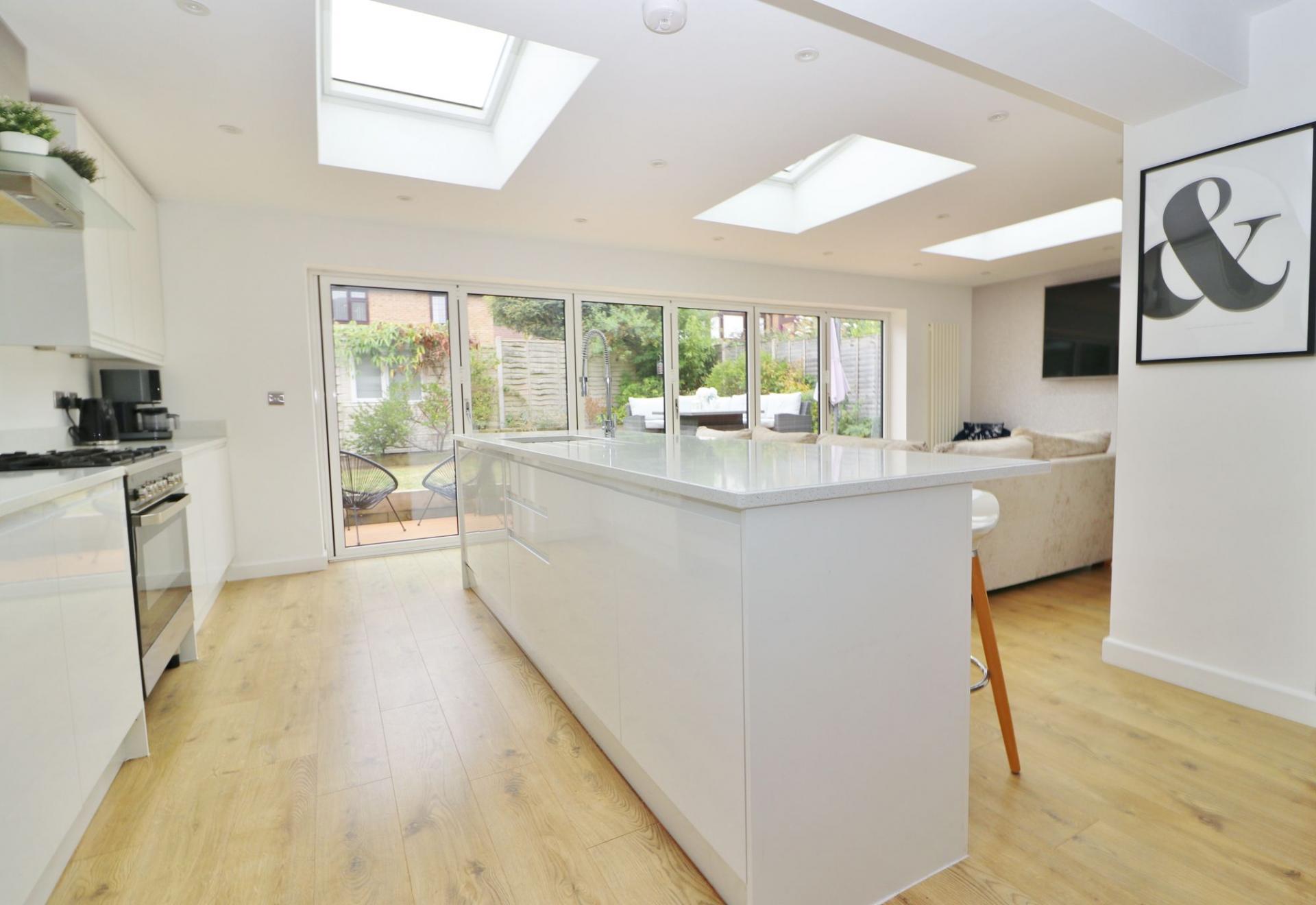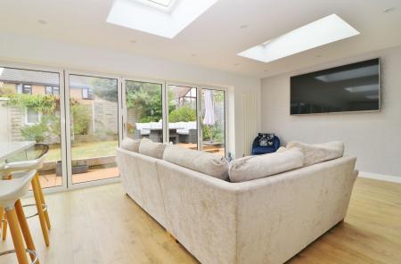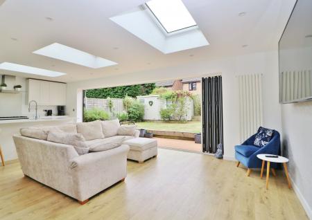 The heart of the home has to be the wonderfully spacious kitchen/diner/family room, which has a part-vaulted ceiling with skylight windows and bi-folding doors opening out to the rear garden.