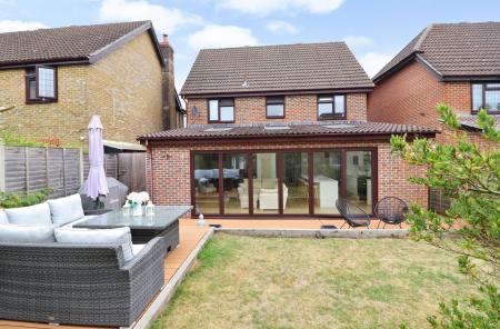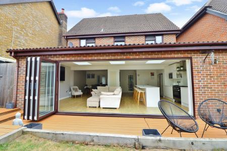 This extended and beautifully presented, four/five bedroom family home benefits from an attractive, south westerly rear garden and driveway parking for six cars.