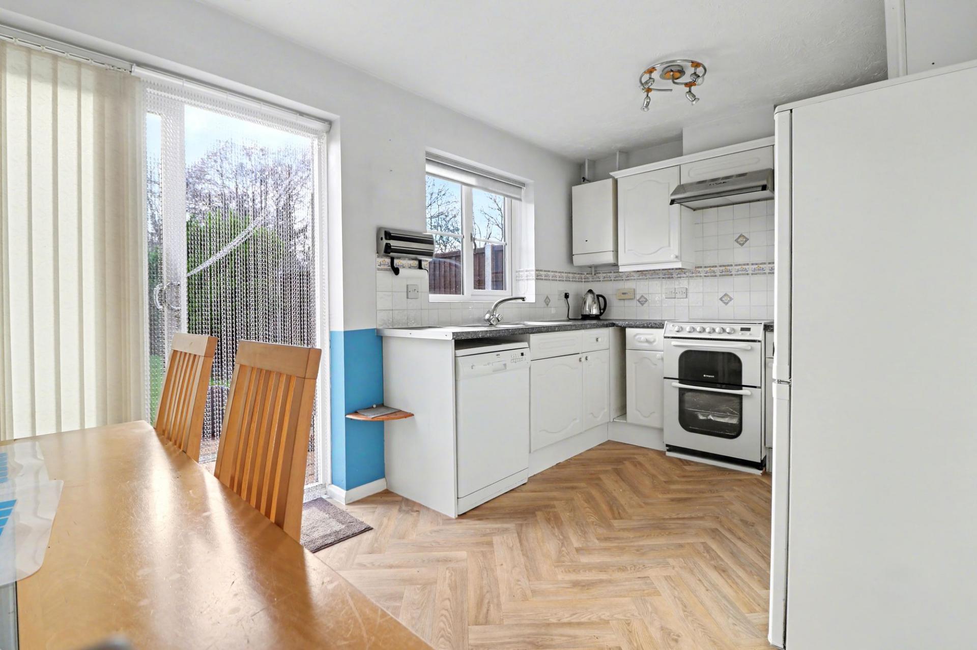 Offered with no forward chain and situated at the end of a cul-de-sac, this three bedroom, linked semi-detached home benefits from an attractive, south westerly rear garden, a garage and driveway parking.
