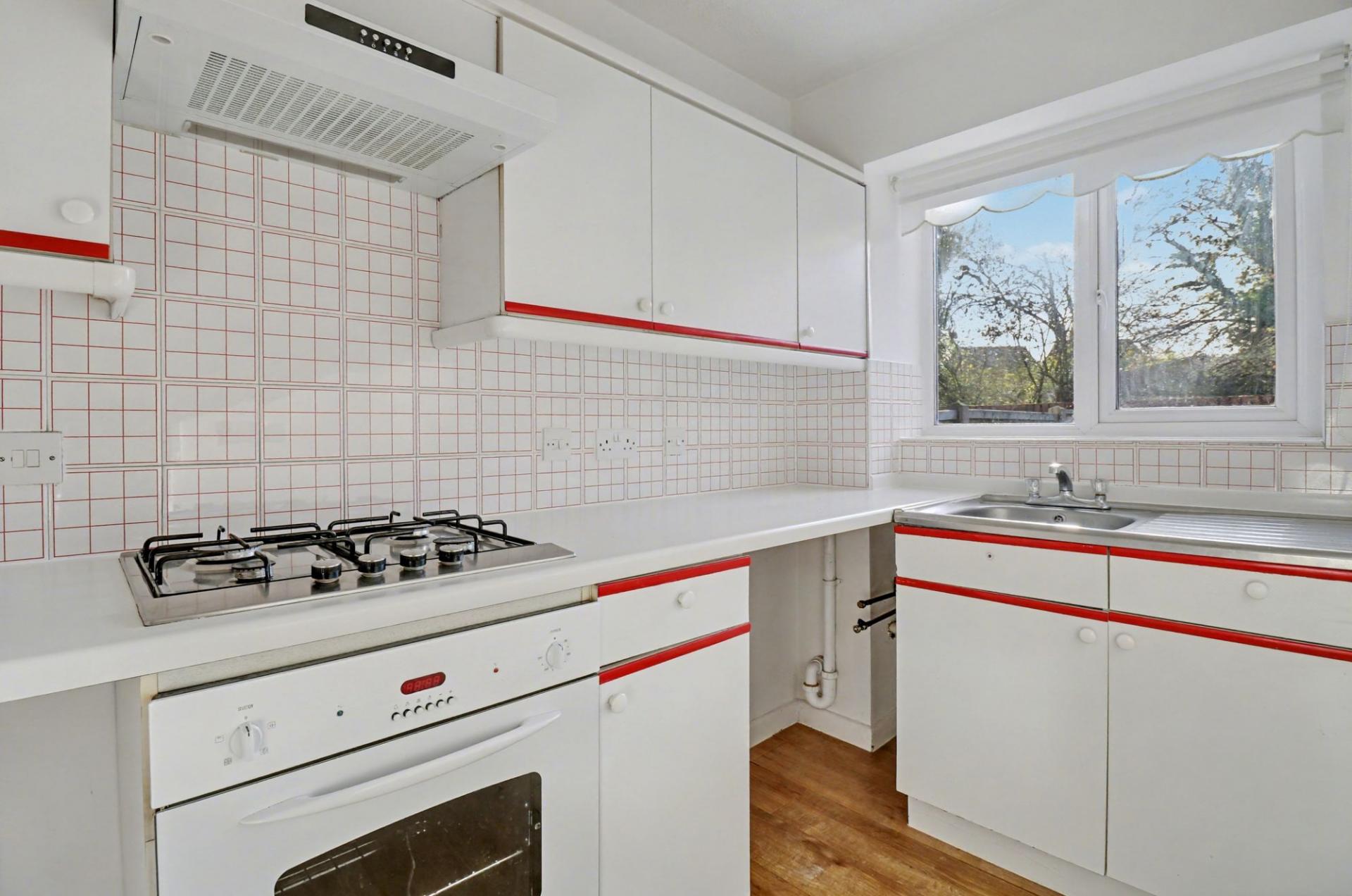 Offered with no forward chain, this one bedroom ‘cluster house’ is situated on a corner plot with a private, southerly facing garden and off road parking for two cars.