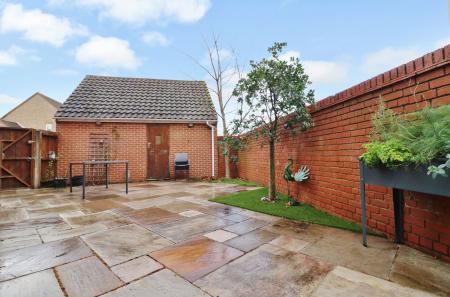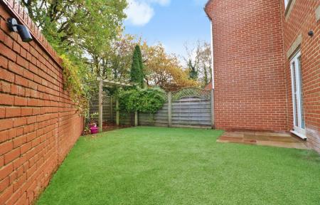Gated access leads through to the side garden which has been laid to paving, providing a large seating area, and wraps around to the rear which is laid to artificial lawn with two additional patio areas and a pergola to the far corner.