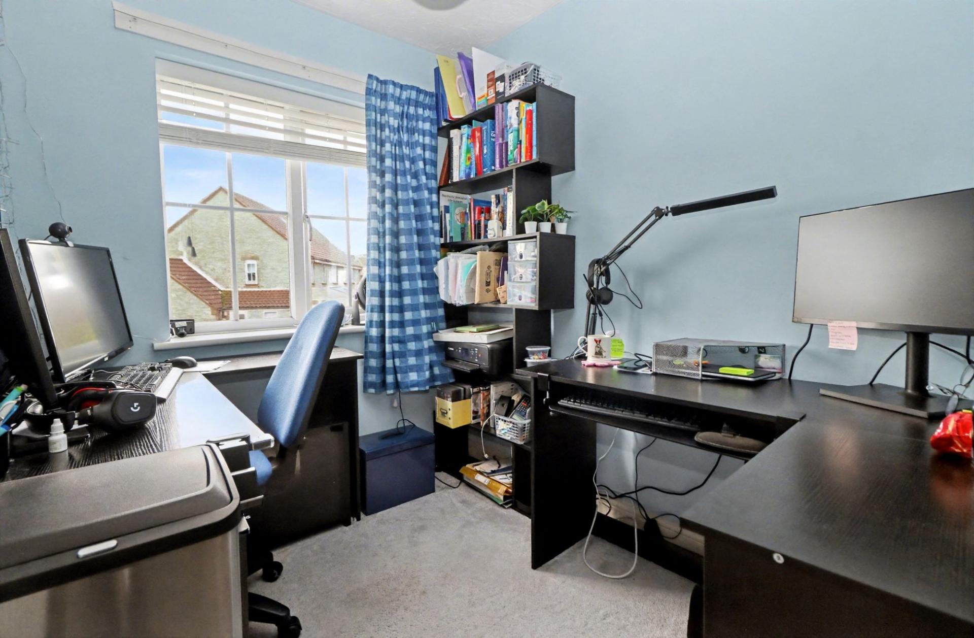The generous master bedroom faces the front of the property and has fitted wardrobes, whilst bedroom two overlooks the rear garden and the third bedroom has a window to the front.