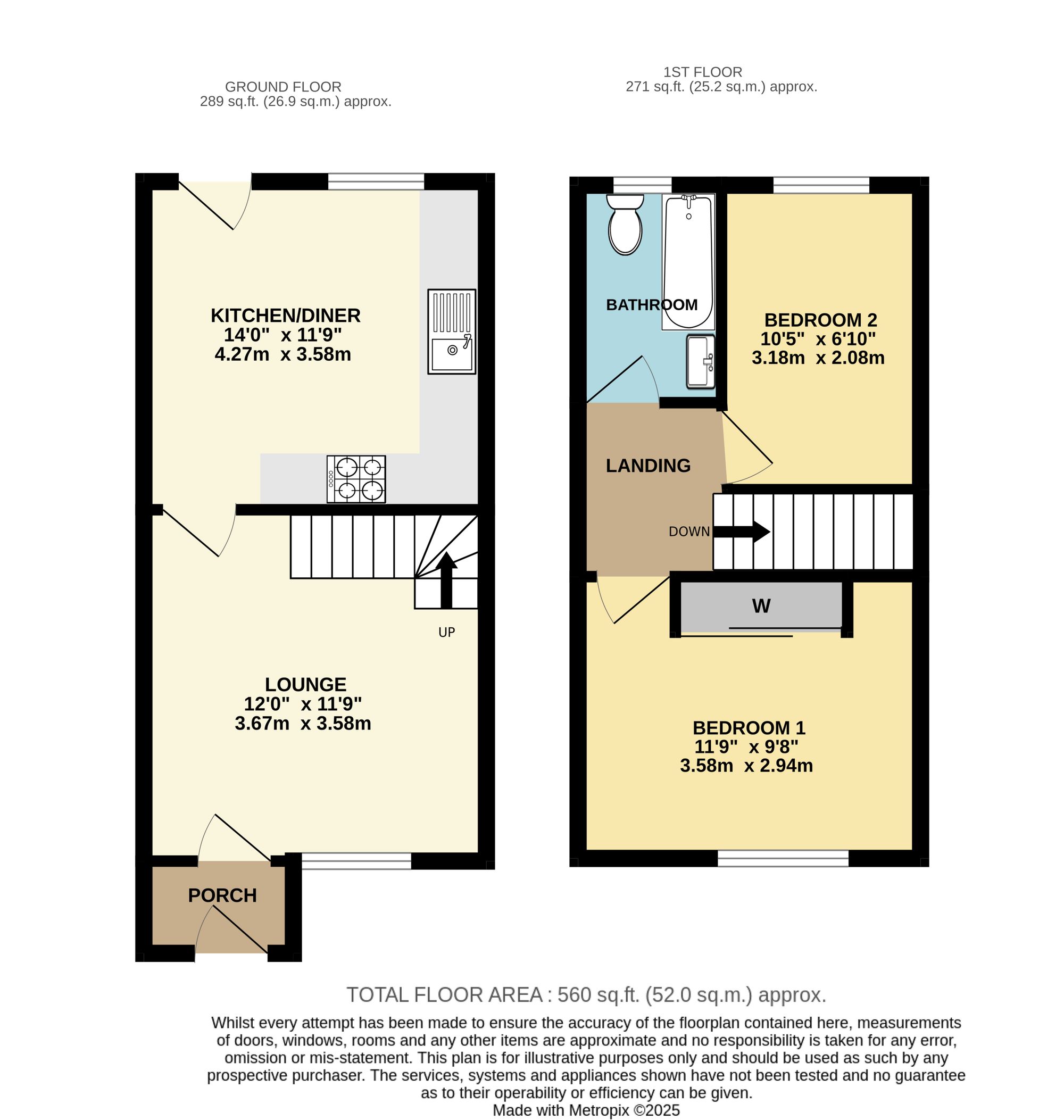 The accommodation on the ground floor comprises a well-proportioned lounge and a modern kitchen/diner, whilst on the first floor there are two bedrooms and a modern bathroom.