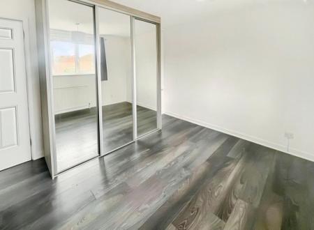 The good-sized master bedroom has a window to the front and a fitted wardrobe with mirrored, sliding doors, whilst the second bedroom overlooks the rear garden.