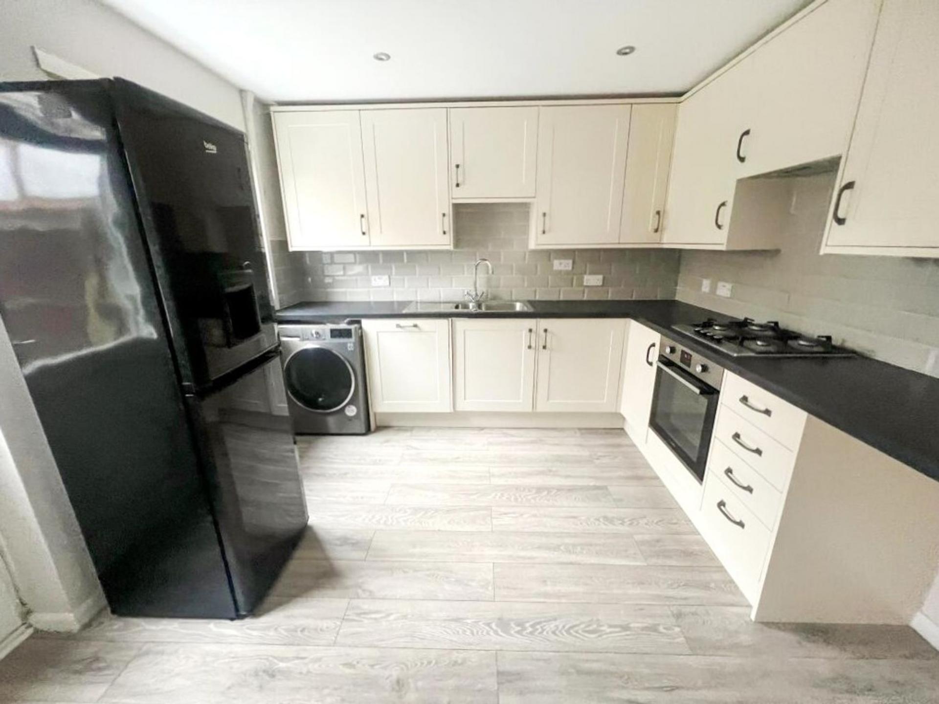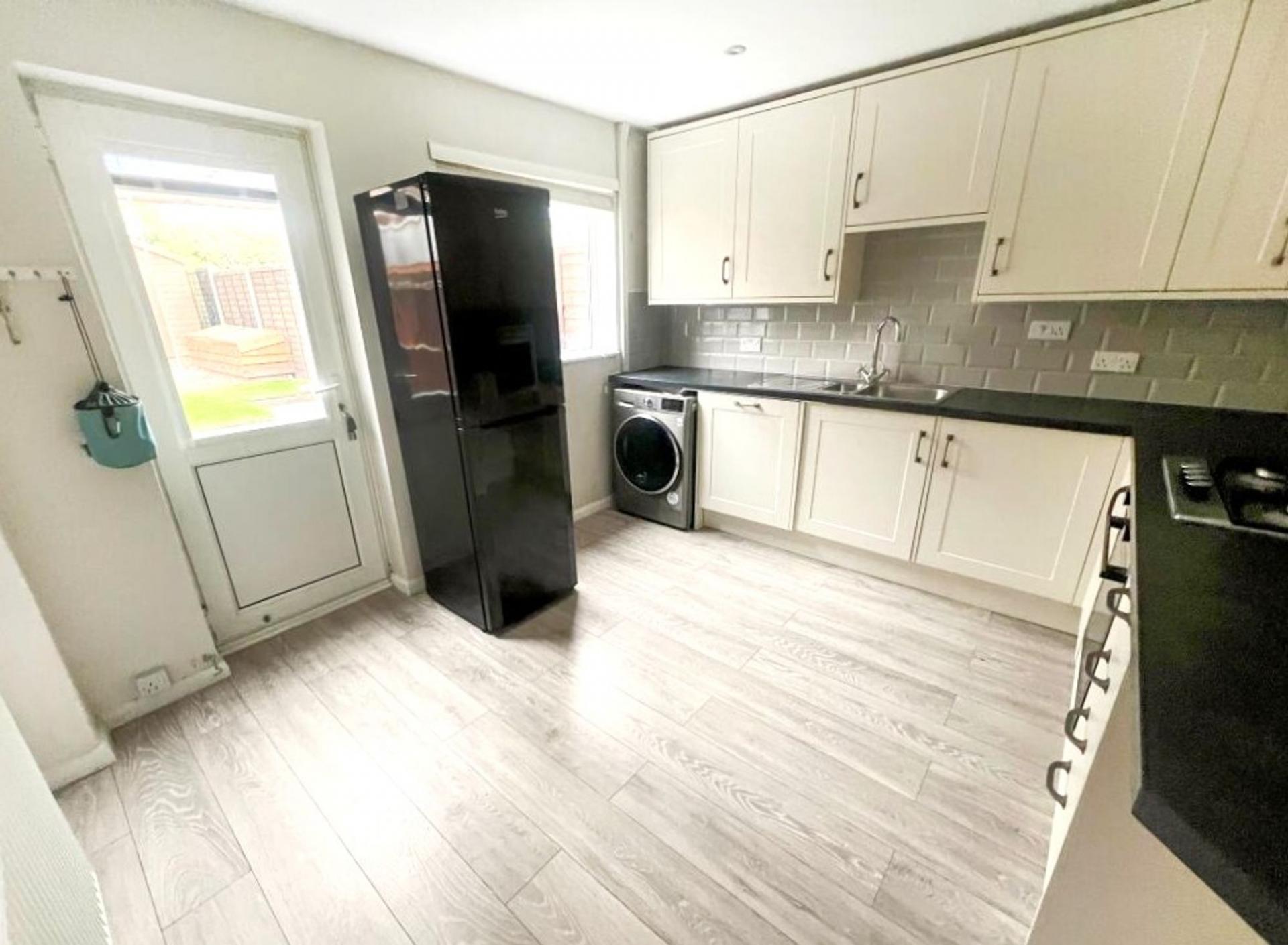 The modern kitchen/diner has been fitted with a range of wall and base units with a built-in oven and gas hob with extractor over, an integrated dishwasher and appliance space for a free-standing fridge/freezer and washing machine. There is also a window to the rear and a door leading out to the garden.