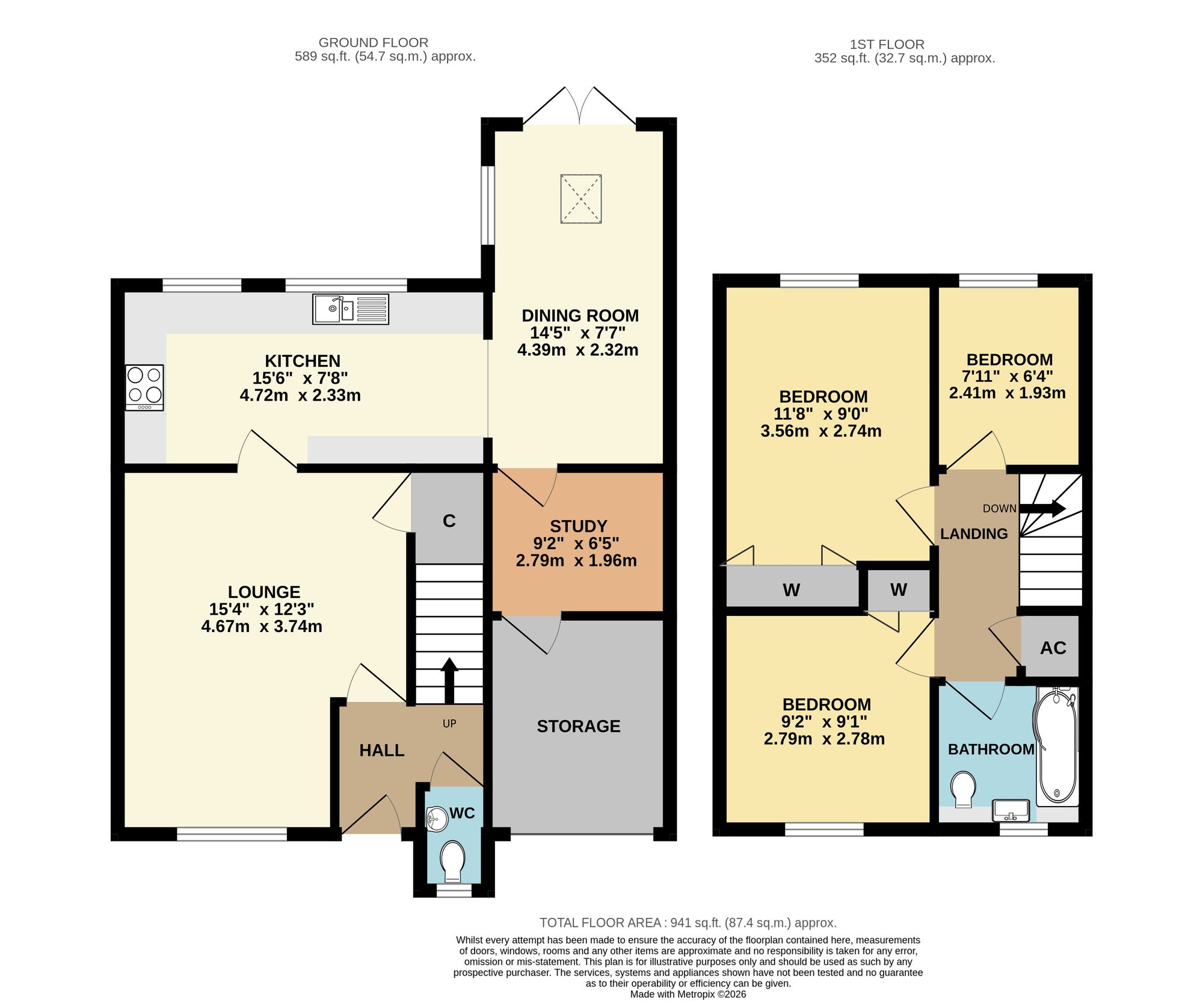 There is a useful study, which previously formed part of the garage, providing access to the storage area which has power, light and an up-and-over door to the front.