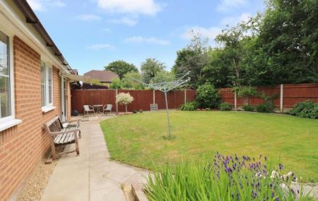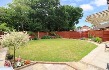 Gated side access leads round to the attractive rear garden which enjoys a south easterly aspect and has a paved patio area, leaving the rest of the garden mainly laid to lawn with planted borders and backing onto trees, offering a great degree of privacy.