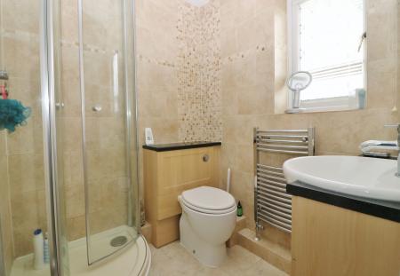 The master bedroom faces the front of the property, has a built-in wardrobe and a modern en-suite shower room.