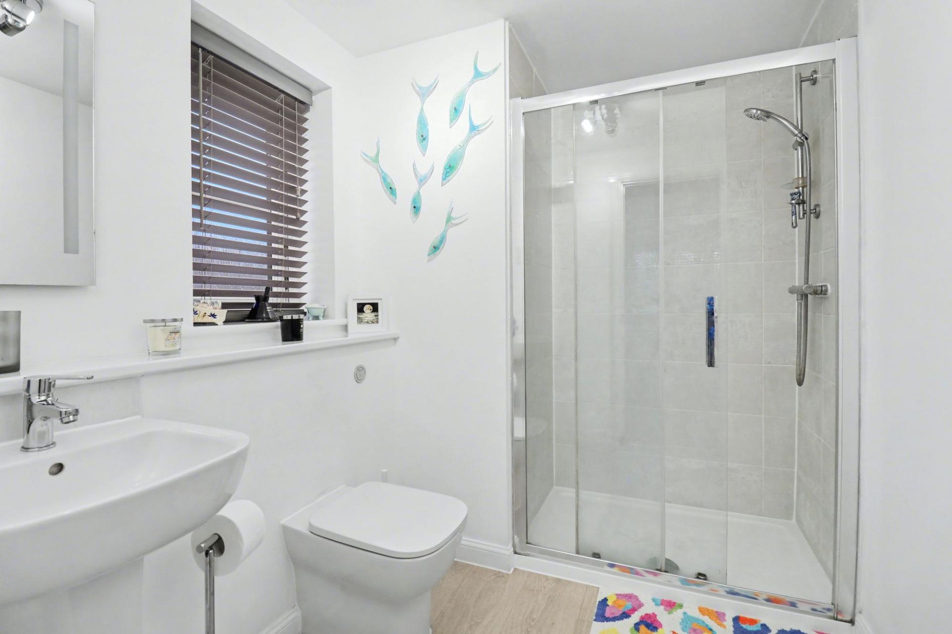 The generous master bedroom faces the front of the property and offers ample space for free-standing furniture. The good-sized en-suite comprises a shower cubicle, wash hand basin, WC and a window to the side.
