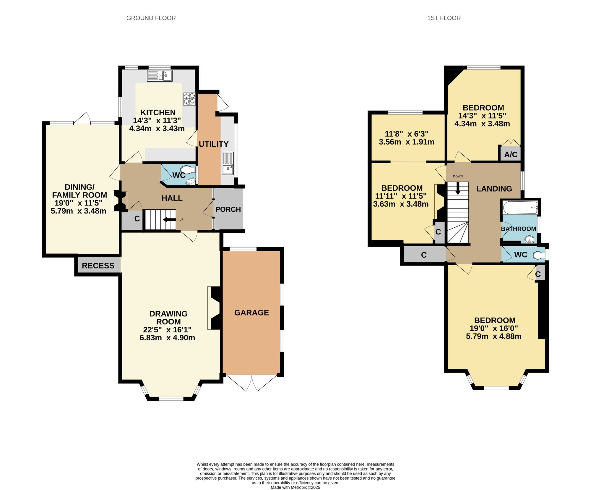 The accommodation on the ground floor briefly comprises a large, impressive drawing room, dining/family room, well-proportioned kitchen, utility and cloakroom. On the first floor there are three generous size double bedrooms, a bathroom and separate cloakroom.
