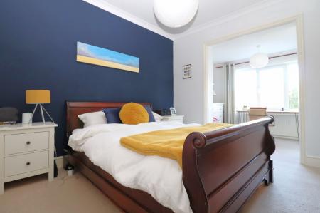 On the first floor landing there is a window to the side, a storage cupboard and access to all first floor rooms. The generous master bedroom enjoys a bay window to the front and a built-in cupboard.