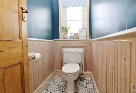 The bathroom comprises a panel enclosed bath, wash hand basin and a window to the side, whilst the adjacent cloakroom has a WC and a window to the side.