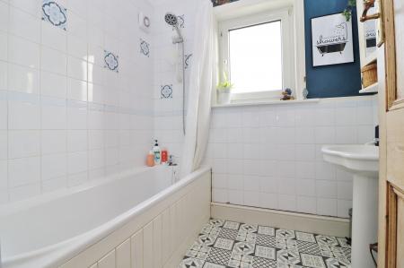 Bedroom two overlooks the rear garden and has an airing cupboard, whilst the third bedroom has a feature fireplace, a built-in cupboard with hanging space and an opening leading through to a study area which has a window to the rear.
