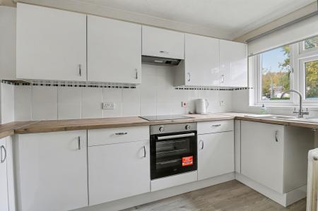 The kitchen faces the front of the property and has been fitted with a modern range of wall and base units with a built-in oven and electric hob with extractor over, as well as appliance space for a free-standing fridge/freezer and washing machine.