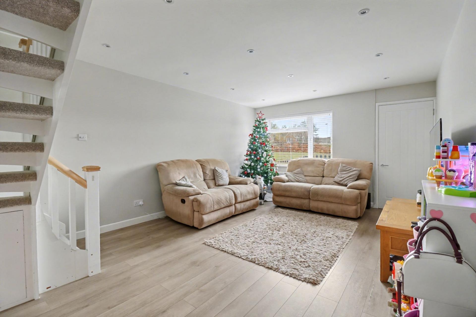 The entrance porch leads through to the generous lounge/diner which faces the front of the property and has stairs leading to the first floor.