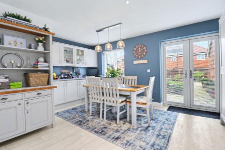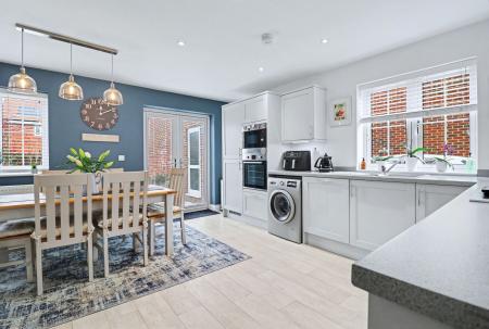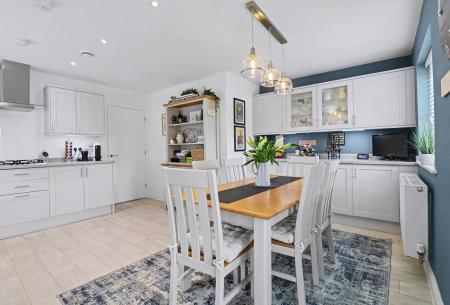 The spacious kitchen/diner provides an ideal space for family life and entertaining. It is fitted with a range of modern units and integrated appliances including a fridge/freezer, single oven, microwave, dishwasher, gas hob and extractor. There is ample space for a dining table, making it perfect for both everyday meals and social occasions.