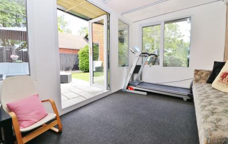 The beautiful, rear garden enjoys a south easterly aspect and has a paved seating area with a timber garden room to the side with power and light. The remainder of the garden is mainly laid to lawn with mature planted borders offering a great degree of privacy.