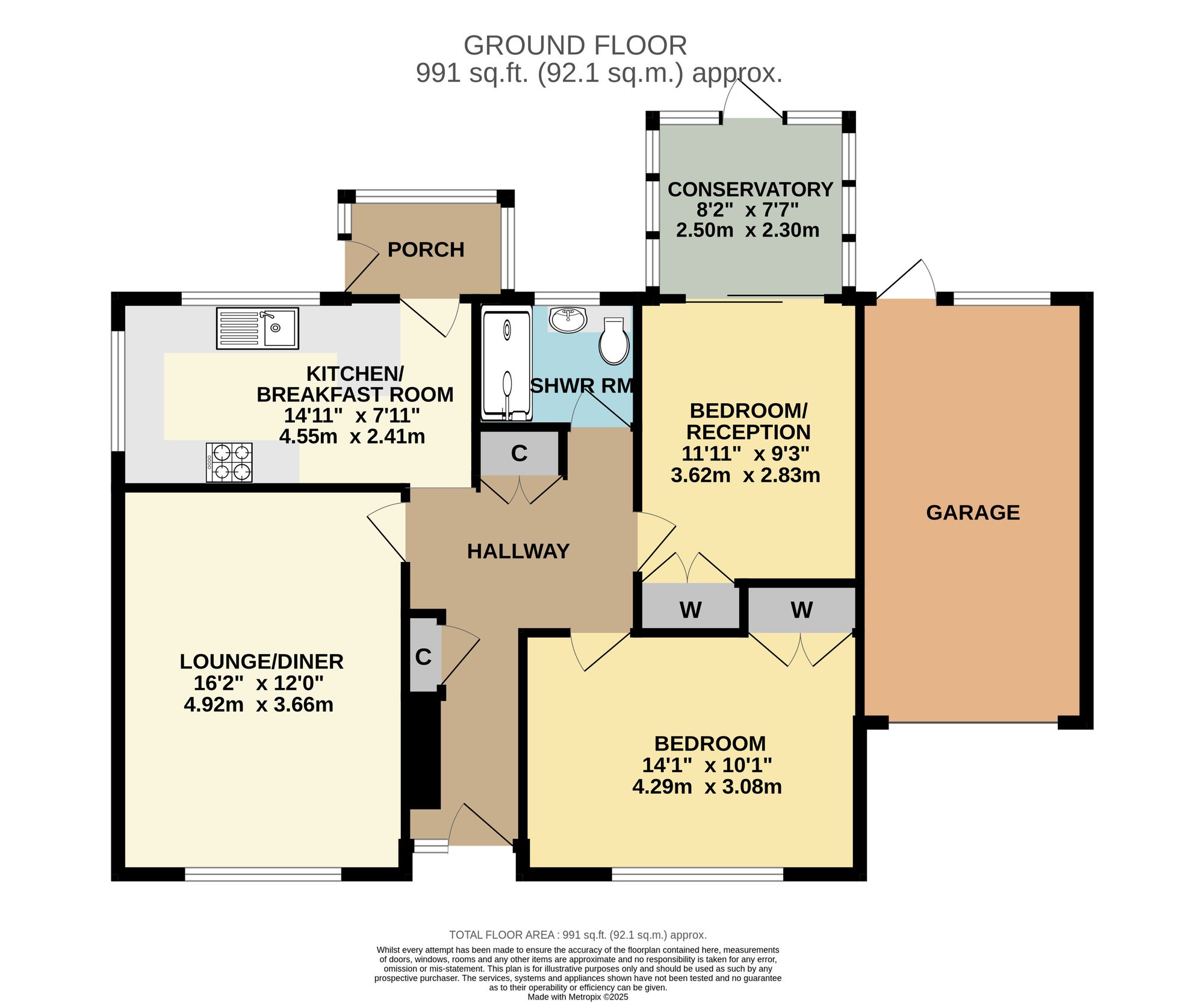 The accommodation comprises a spacious lounge/diner, kitchen/breakfast room, a conservatory, two double bedrooms, a modern shower room and a rear porch.