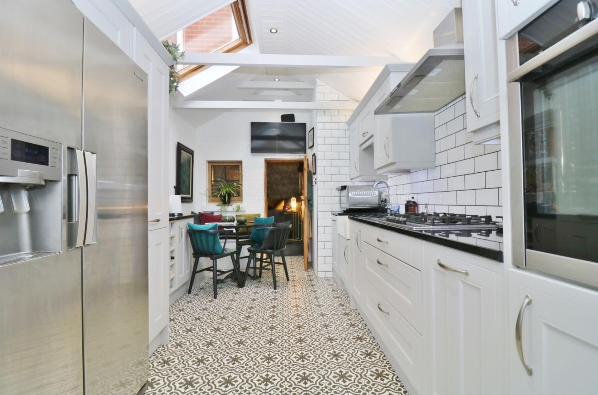 The adjoining lounge overlooks the garden and has a door to the rear and a snug to the side which leads through to the beautiful kitchen extension, which has Velux windows, a window to the side and French doors leading onto the rear, decked terrace.