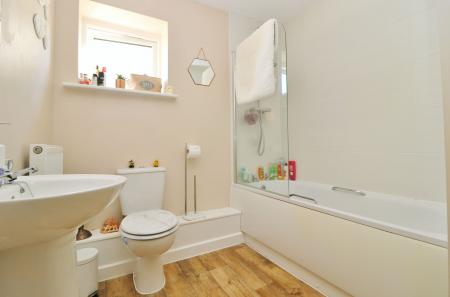 The generous double bedroom has a window to the front and a fitted wardrobe, whilst the modern bathroom comprises a panel enclosed bath with shower and screen over, wash hand basin and WC.