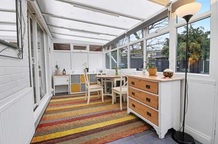 The spacious lounge is a well-proportioned room with sliding doors leading through to the conservatory which is currently being used as dining room and has a utility area to one side and a door leading out to the rear garden.