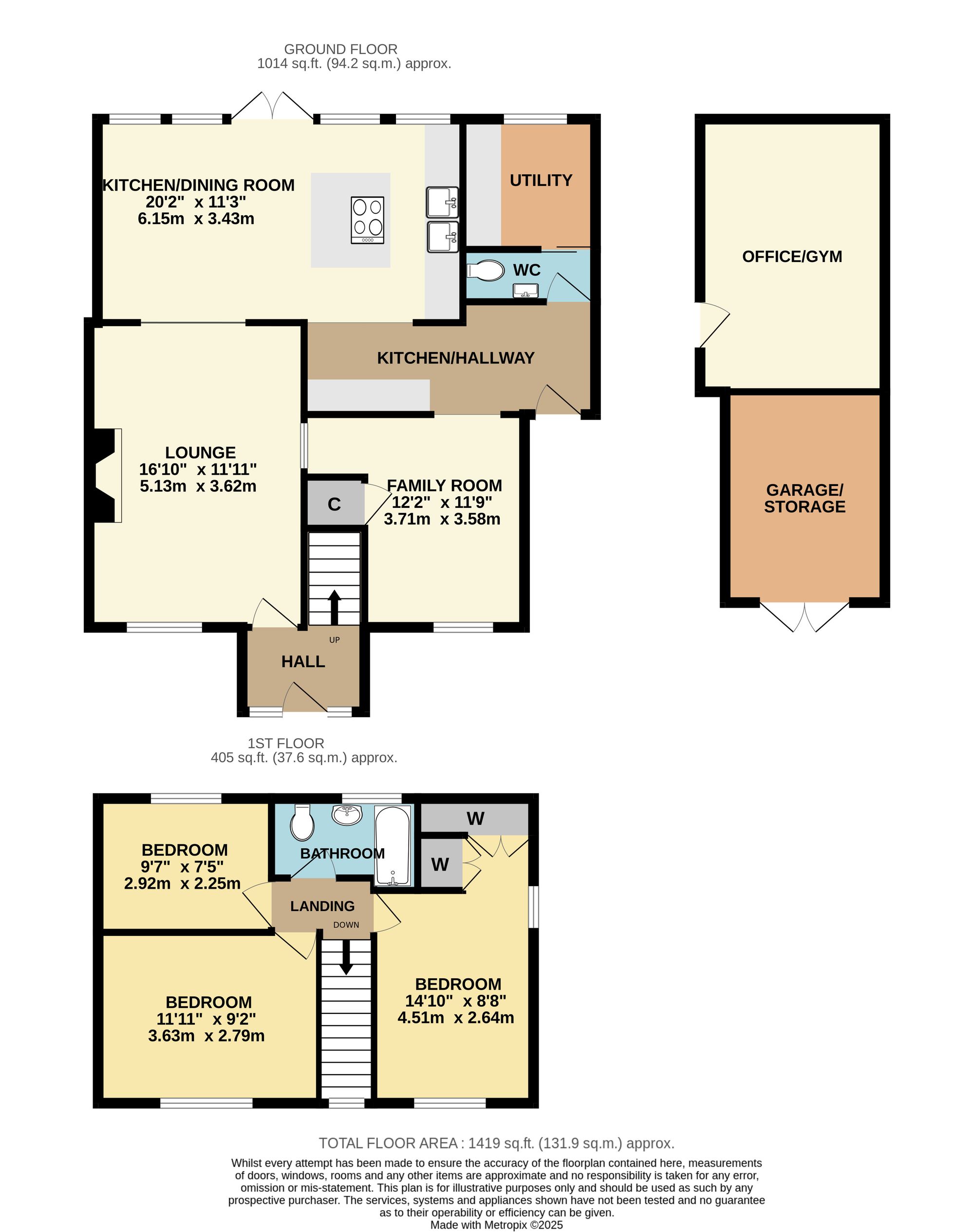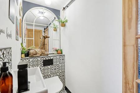 The well-proportioned family room has a window to the front and a built-in storage cupboard, whilst the modern WC provides access through to the utility room which has a window to the rear and space for further appliances.