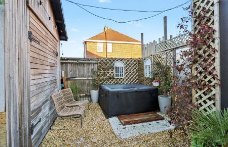 To the side there is space for a hot tub (not included), a timber garage/storage unit and a useful brick-built office/gym with power and light.