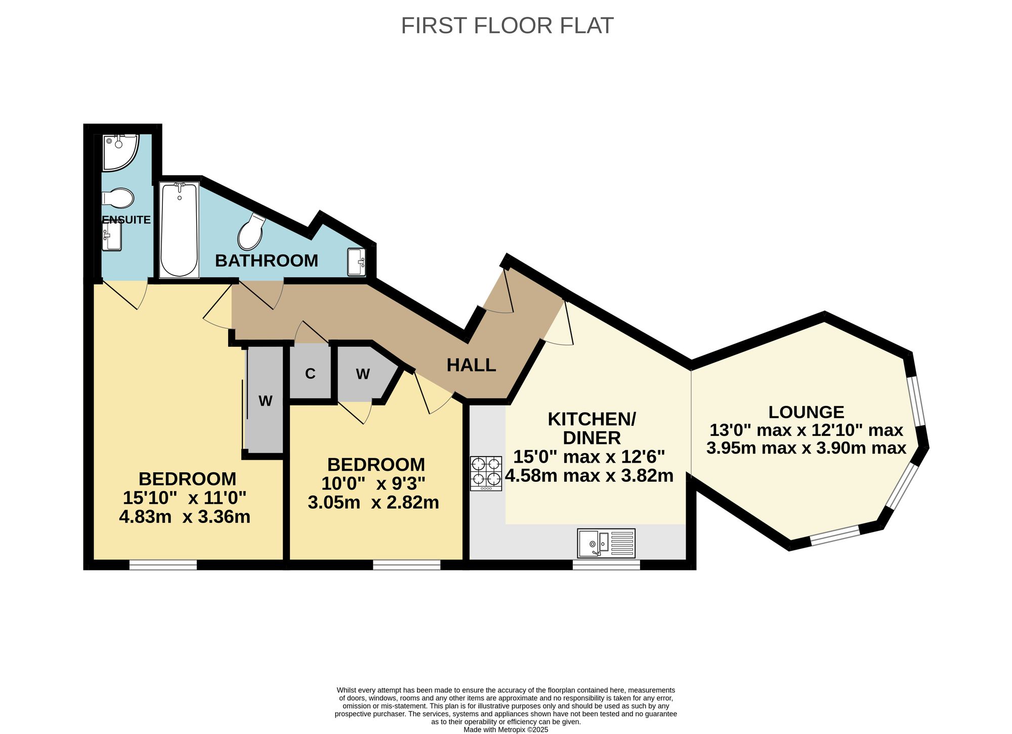 The good-sized master bedroom has a window to the side, a fitted wardrobe and a modern en-suite with a corner shower cubicle, wash hand basin and WC.