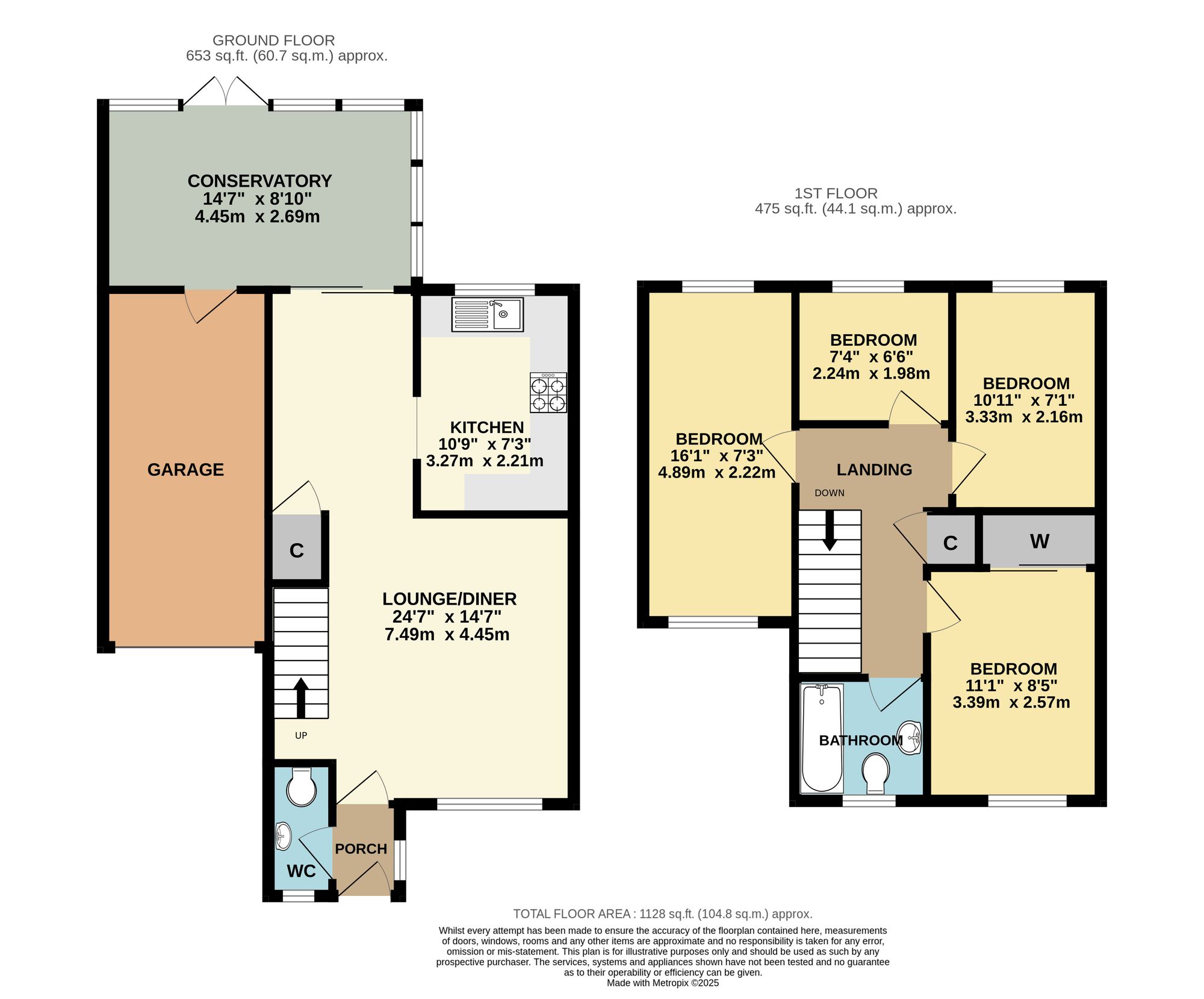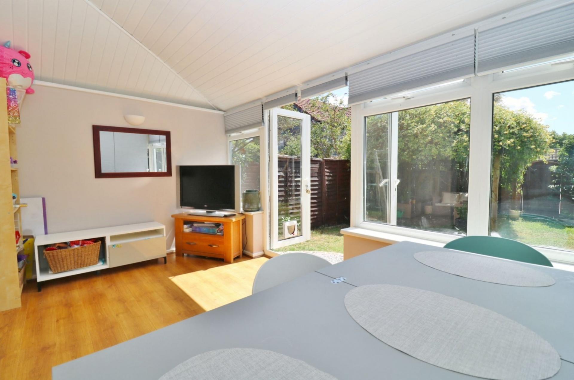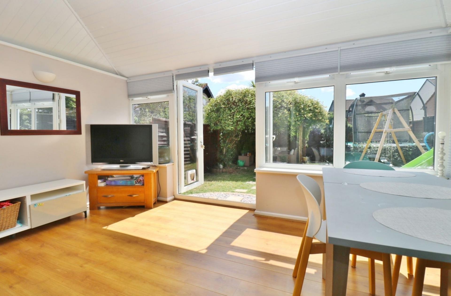 Sliding doors from the dining area lead through to the spacious conservatory, which has a door to the integral garage and French doors leading out to the rear garden.
