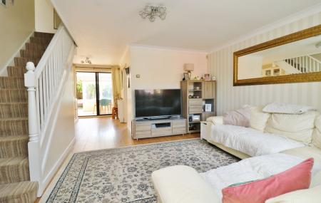 The well-proportioned lounge faces the front of the property, has stairs leading to the first floor and is open plan to the dining area, which has an understairs storage cupboard.