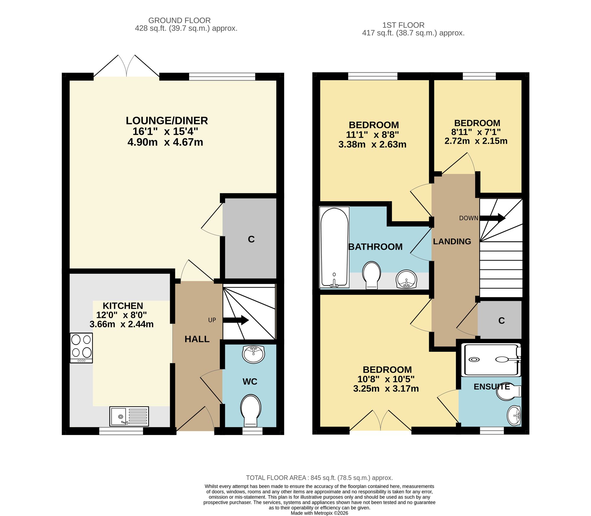 The ground floor comprises a contemporary fitted kitchen, WC and a light and spacious lounge/diner with French doors to the rear garden.
